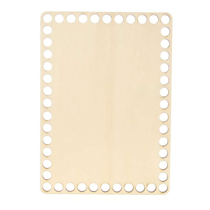 Dno na košík, ze 4mm topolové překližky ve tvaru obdélníku, který má pro snazší háčkování zaoblené hrany.
