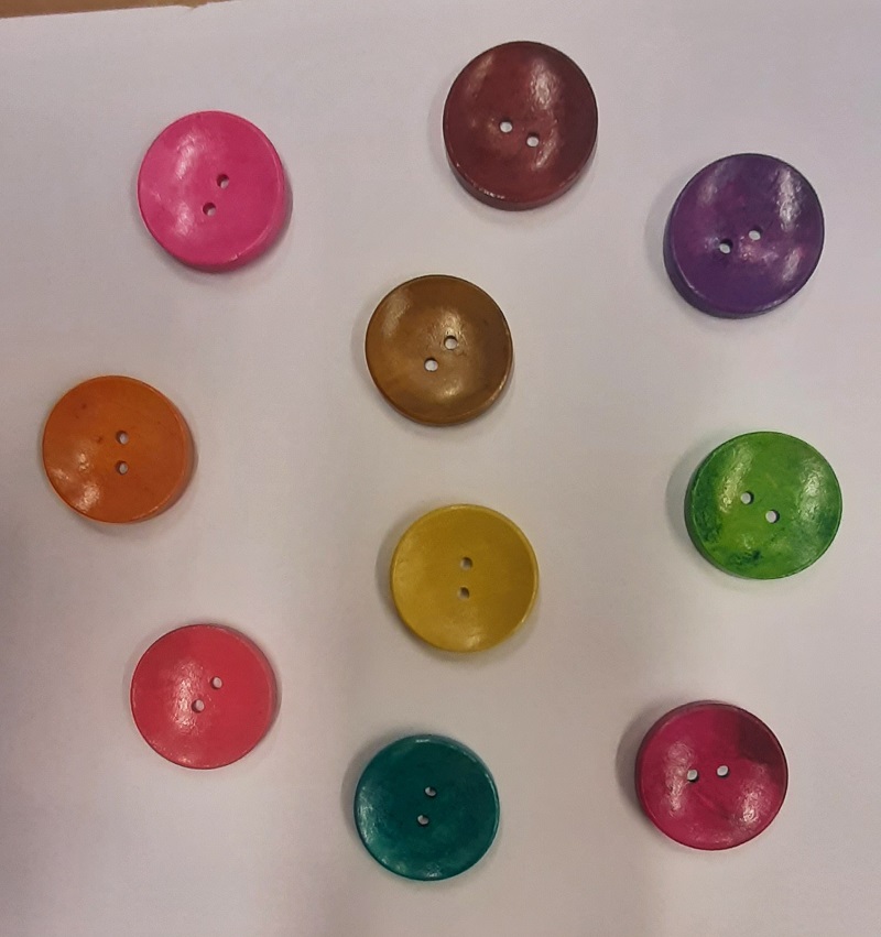 Dřevěné knoflíky ve tvaru misky vhodné k ozdobení hotového výrobku.