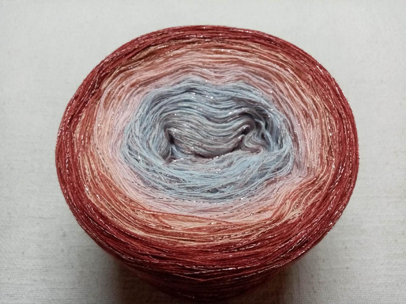 Plynulé barevné přechody vytvářejí originální vzory bez nutnosti měnit přízi, zatímco decentní lesk lurexu dodá hotovému výrobku jedinečný efekt.