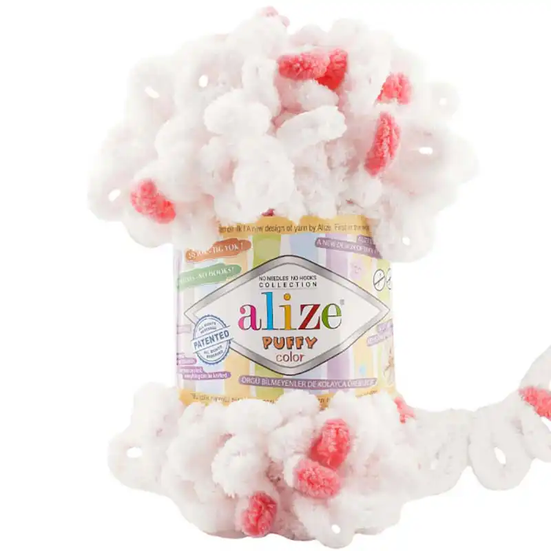 Alize Puffy Color 6490 Korálová, Bílá