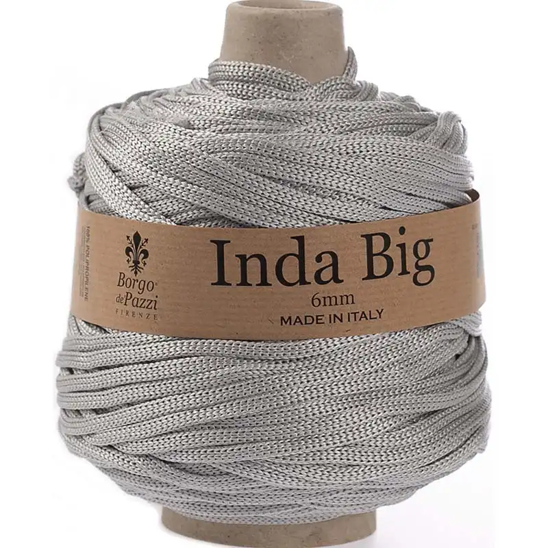 Inda Big od Borgo de Pazzi je velmi lehký, mírně lesklý, placatý špagát o šířce 6mm, vyrobený ze 100% polypropylenu.