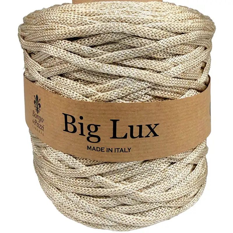 Inda Big Lux 6mm je elegantní šňůrová příze s jemným lurexovým leskem, která dodá vašim projektům nádech luxusu.