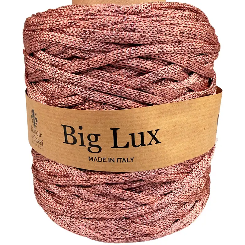 Příze Inda Big Lux vychází z oblíbeného typu šňůrových přízí, podobně jako varianta Inda Rainbow, ale místo barevných přechodů přináší sofistikovaný třpyt díky lurexovému vláknu. Výsledkem jsou elegantní projekty s jemným leskem, které působí stylově a nadčasově.