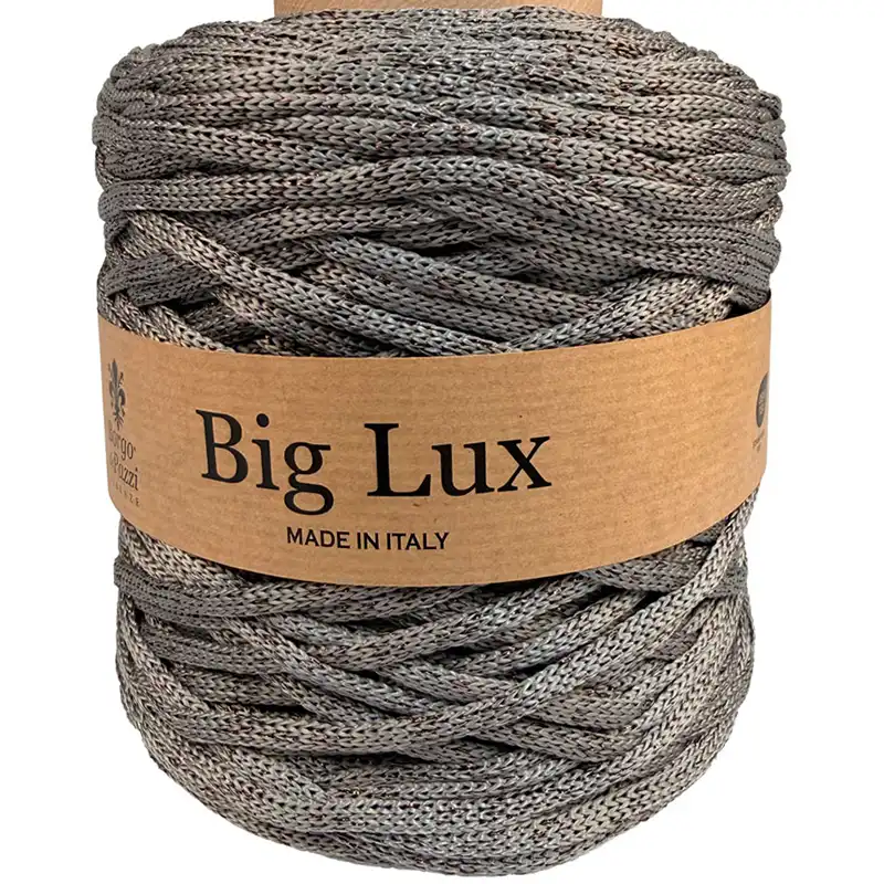 Inda Big Lux 6mm je elegantní šňůrová příze s jemným lurexovým leskem, která dodá vašim projektům nádech luxusu.