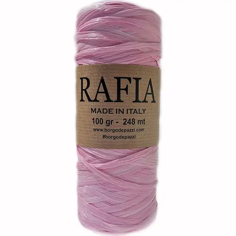 Rafia 2 Jemně růžová od Borgo de Pazzi je vyrobená z viskózových vláken zíkaných z celulózy.