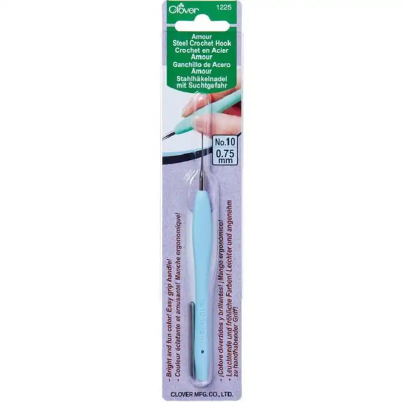 Háček japonského výrobce CLOVER Amour 0,75mm patří mezi špičku v ergonomických háčcích a je oblíbený mezi začátečníky i pokročilými. Díky speciálně tvarovanému ocelového hrotu snadno proniká do oček a umožňuje hladké vedení příze bez zadrhávání.