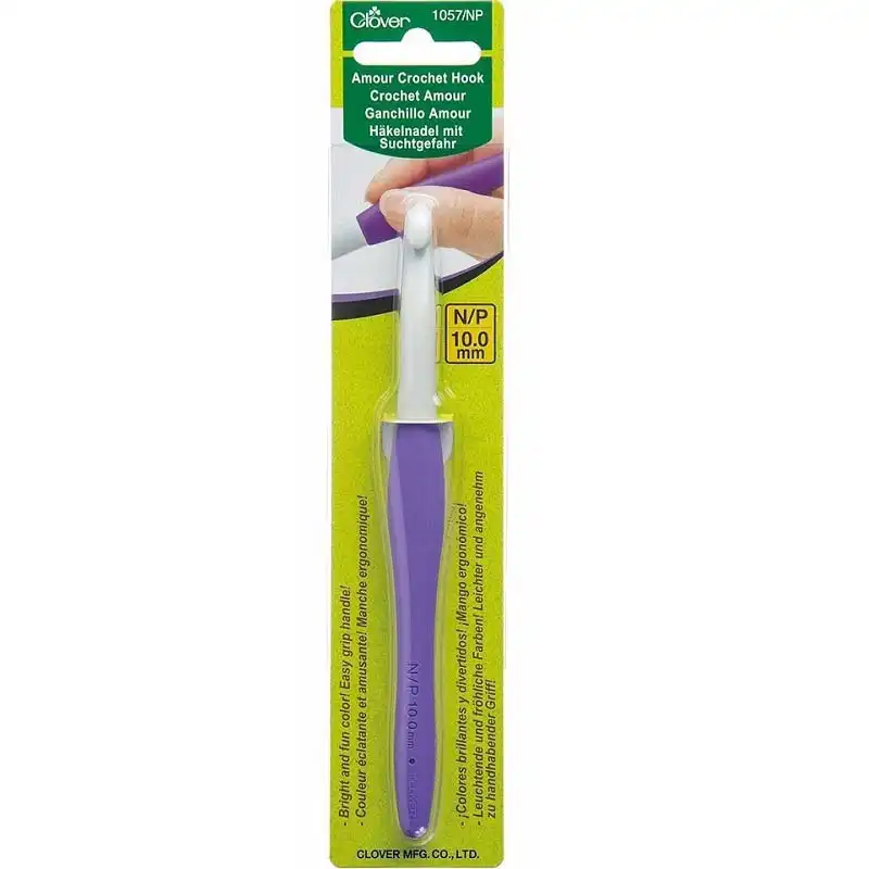Háček japonského výrobce CLOVER Amour 10mm patří mezi špičku v ergonomických háčcích a je oblíbený mezi začátečníky i pokročilými. Díky speciálně tvarovanému plastového hrotu snadno proniká do oček a umožňuje hladké vedení příze bez zadrhávání.