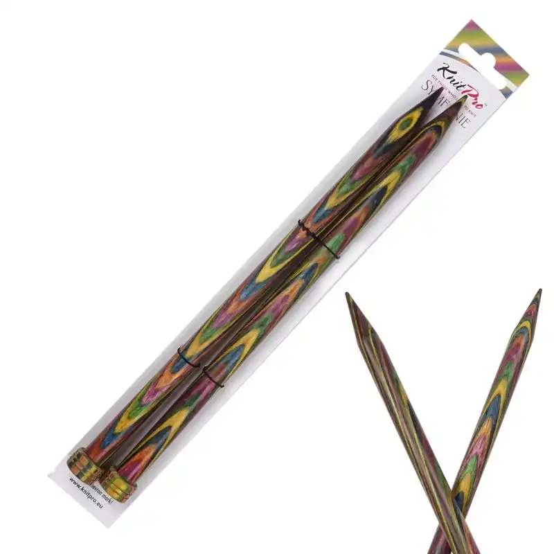 Rovné jehlice KnitPro Symfonie o délce 25 cm jsou vyrobeny z kvalitního vrstveného březového dřeva, které je teplé na dotek a velmi lehké. Typické barevné provedení podtrhuje jejich jedinečnost. Dokonale zpracované špičky umožňují přesné nabírání ok a hladký přechod příze po celé délce jehlice.