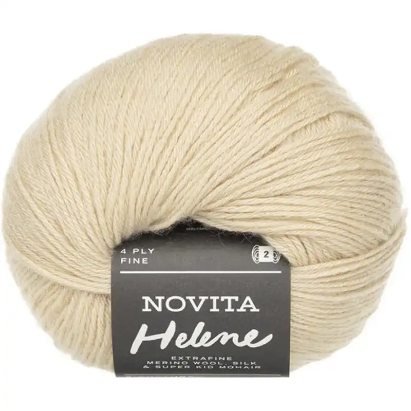Novita Helene je luxusní přírodní příze z kolekce Novita Signature, která spojuje jemnou merino vlnu, lesklé hedvábí a lehký super kid mohér.