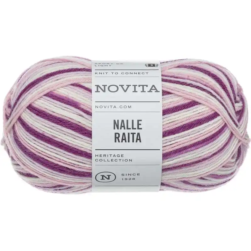 Příze Novita Nalle je skutečná klasika, která patří mezi oblíbené finské příze po celá desetiletí a po celém světě. Nalle Raita je barevná variace této příze.