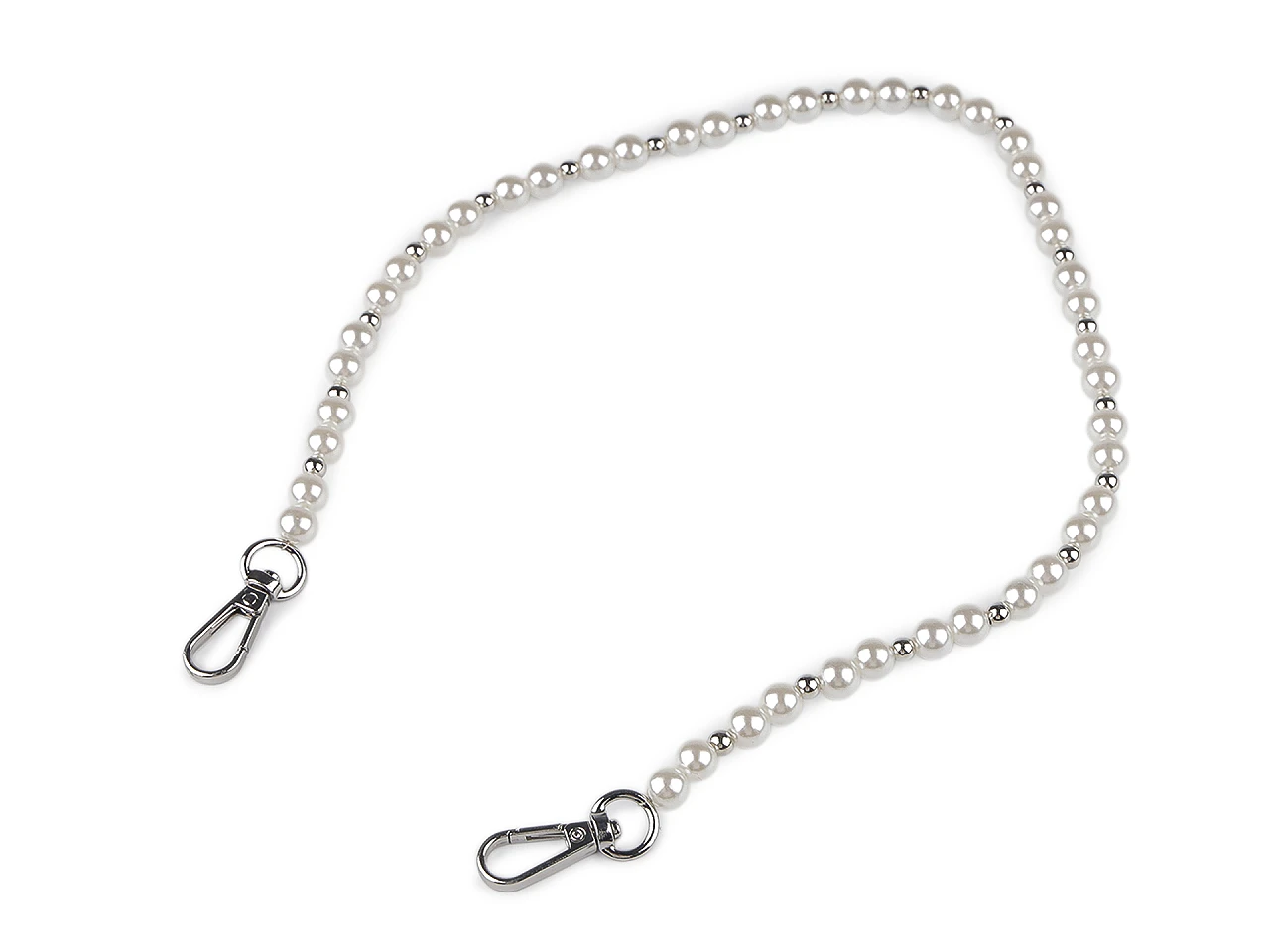 Perlovo-stříbrný řetízek / ucho na kabelky a telefony délka 60 cm Niklskladem 3 kus60 Kč/ kus50 Kč bez DPH