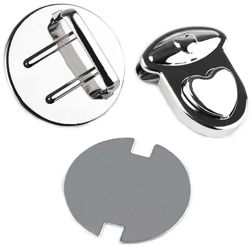 Sada zapínání na kabelku či tašku se skládá ze tří dílů. Jeden díl se připevní na vnitřní část tašky, druhý